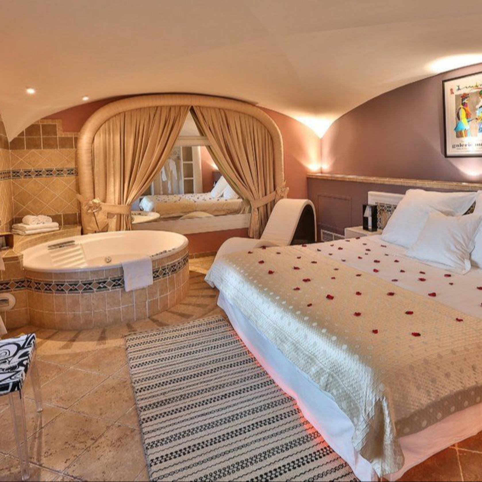 Hôtel avec jacuzzi privatif dans la chambre.